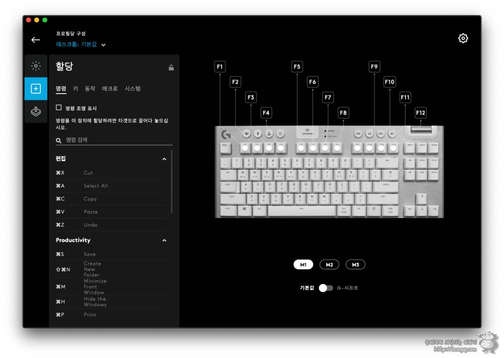 거기다 로지텍의 G HUB를 이용해서 게이밍에 필요한 키매핑과 매크로 설정은 물론 게임 모드를 손쉽게 이용할 수도 있습니다. 역시나 다양한 커스터마이징 앱을 이용해 봤지만 G HUB의 직관적이고 강력한 기능은 로지텍 G913 TKL 화이트의 또다른 장점이기도 합니다.
